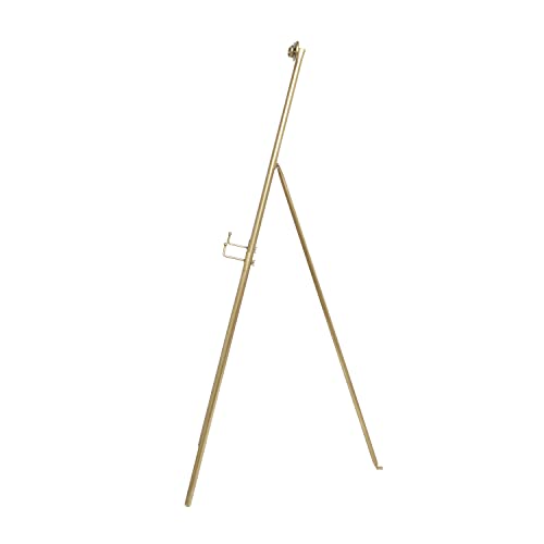 Give your surface space a finishing touch with these beautifully crafted easels. Durable and sturdy, this easel lets you display your favorite things with ease, and with out overshadowing your piece. Use as decorative furniture for displaying framed accent pieces and best appreciated with floor potted plants. This item ships in 1 carton. Decorative floor easel features 3 adjustable levels to suit various sized items; however, items should not exceed the height of the easel when placed on it to prevent tipping and to ensure stability. This easel is designed to accommodate items with a maximum weight limit of 10 pounds, and a maximum height of 30 inches at the lowest level and between 16- 25 inches at the highest level. Suitable for indoor use only. This item ships fully assembled in one piece. Maximum weight limit is 10 lbs. This is a single gold colored floor standing easel. Glam style.