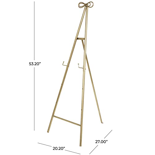 Deco 79 Metal Tall Adjustable Display Stand Easel with Bow Top, 20″ x 27″ x 53″, Gold