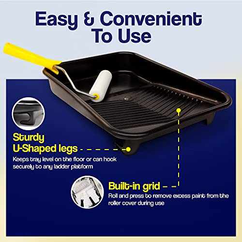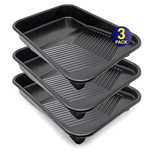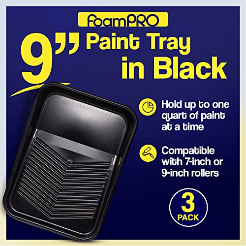 FoamPRO 309 9 inch Molded Plastic Paint Tray- 3 Pack, Black- Solvent-Proof Roller Trays w/Ladder Hook Legs- Durable Interior Exterior Home Painting Supplies & Tools for Paint Rollers & Roller Brushes