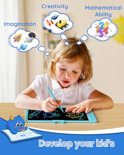 Free Child’s Imagination: The LCD writing tablet provides 10 inches of space for kid’s writing and drawing, free children’s imagination. The eye-protection colorful screen of doodle board provides a better painting experience, avoiding injury to a child’s eyes from long-term use