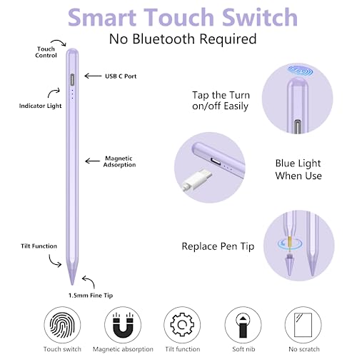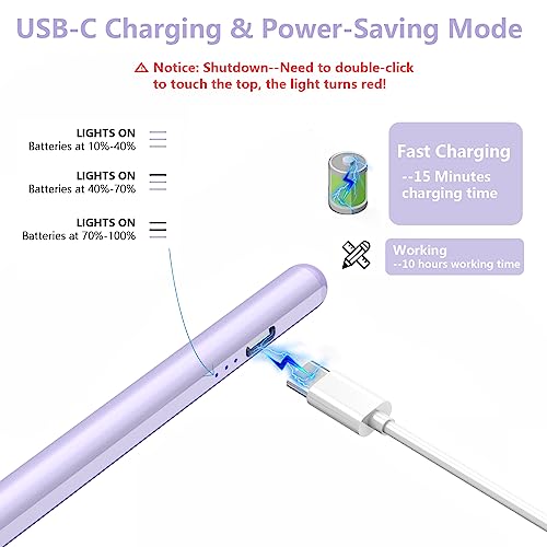 Stylus Pen for iPad 2018-2023, 15 Minute Fast Charging for Apple Pencil for iPad 10th/9th Generation & Pro Series 11/12.9 inch and Air Series 5th/4th/3th Gen with Palm Rejection