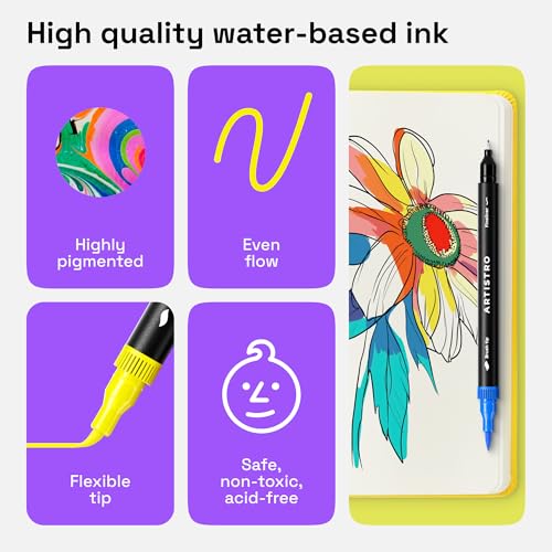 HIGHLY PIGMENTED MARKERS: Each art pen is equipped with an easily coded pen barrel. The ink inside the artist pens is highly pigmented and spreads easily. The ink in the dual tip marker set is safe, non-toxic, and acid-free.
