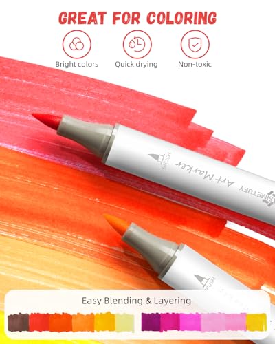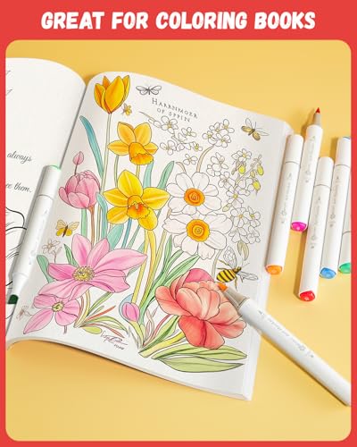 DESIGNED SOFT BRUSH TIP FOR COLORING: The 1-2mm soft brush tip is specially designed and ideal for intricate details, shading, and blending, while the 7mm chisel tip allows for quick, even coverage of large areas. Ideal for adult coloring books, this alcohol markers set lets you express your creativity with precision