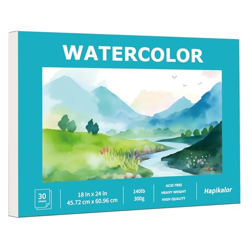 Hapikalor 18″x24″ Large Watercolor Paper Pad, 1-Pack 30 Sheets 140lb/300gsm Artist Painting Large Drawing Pad, Art Supplies for Adults Kids, Watercolors, Watercolor Paint Set, Sketchbook, Teal